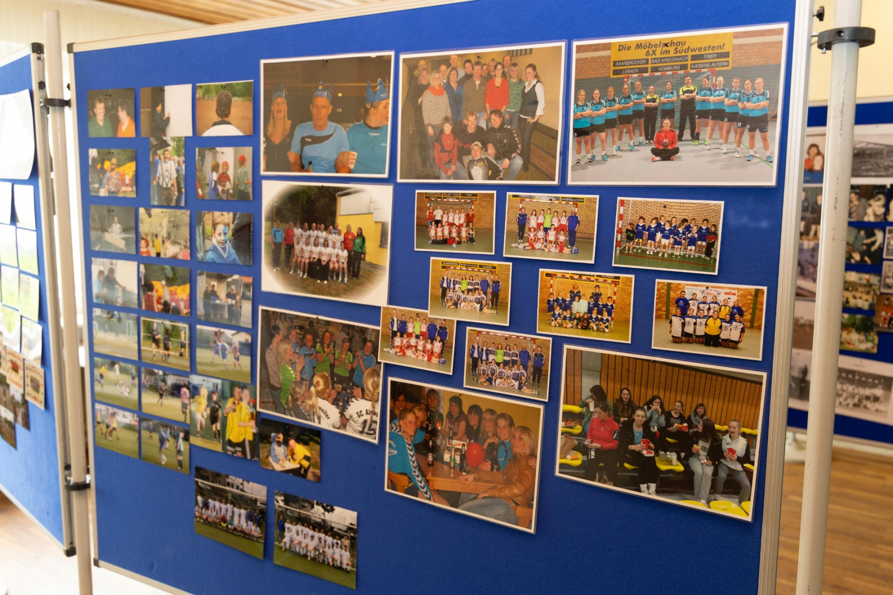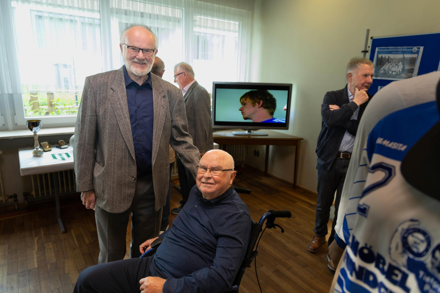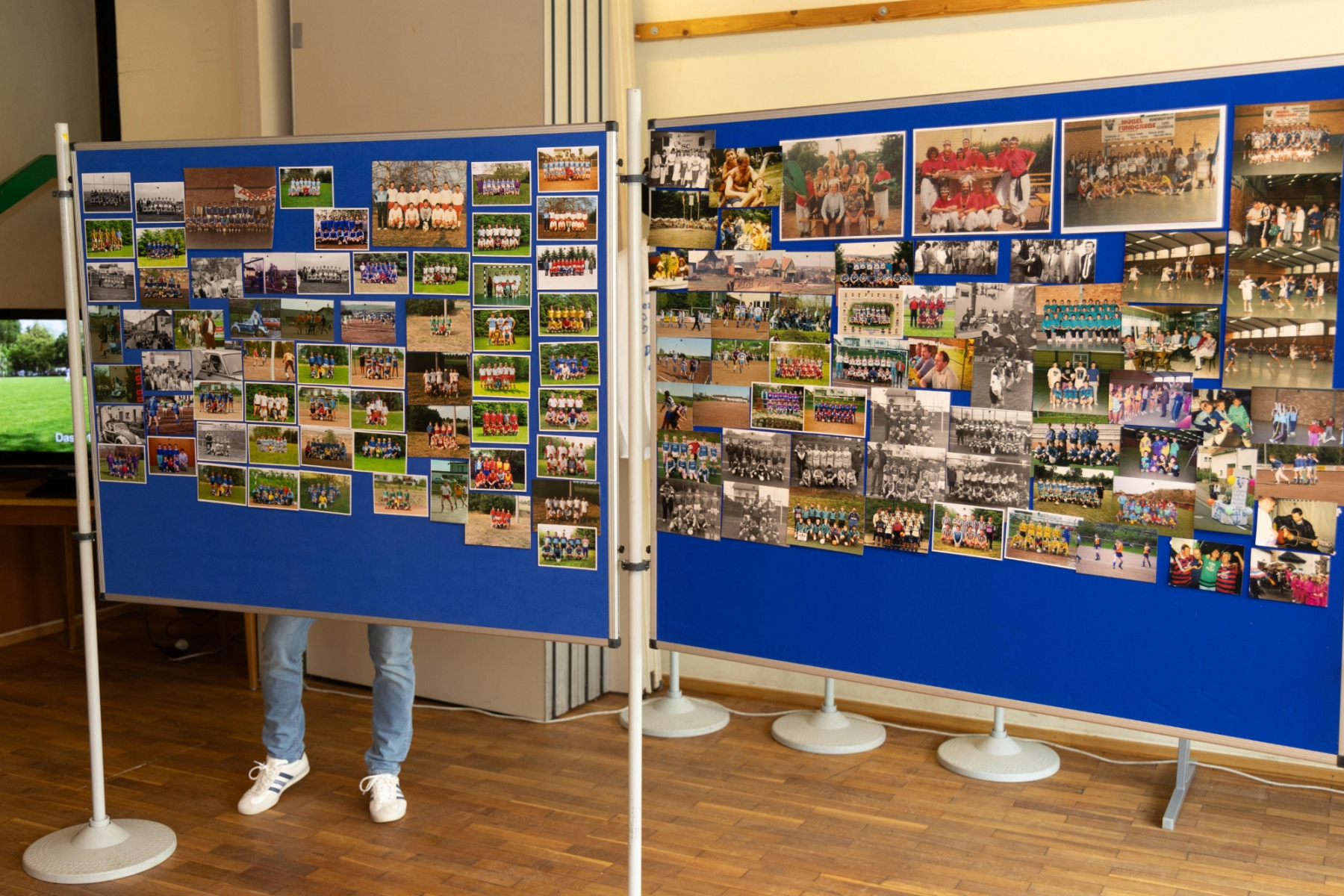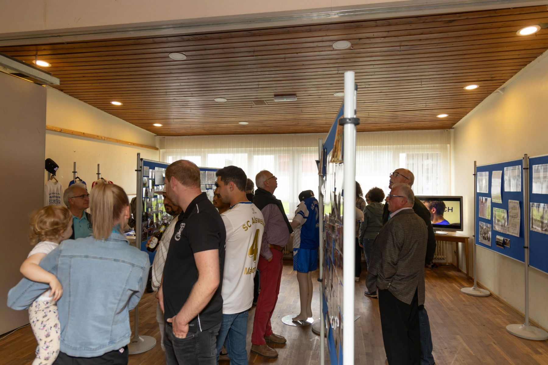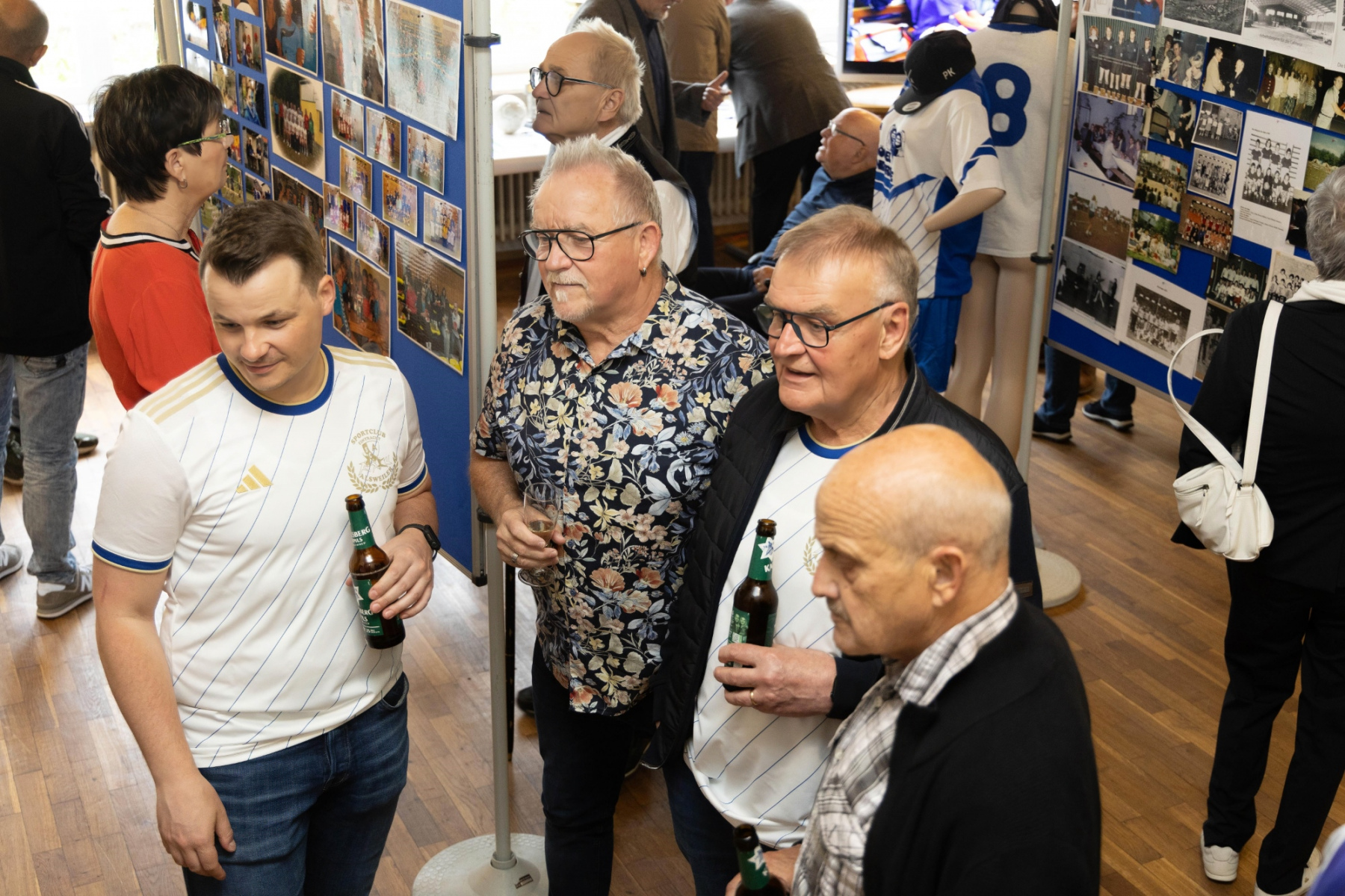 Zudem hielten die Räumlichkeiten eine große Überraschung parat: im „Raum der Geschichte“ wurde die Geschichte des Vereins durch zahlreiche Fotografien und Videomaterial der vergangenen Jahre stimmungsvoll präsentiert. Viele Gäste erkannten sich auf den Fotos wieder und tauschten sich über die früheren Zeiten aus.