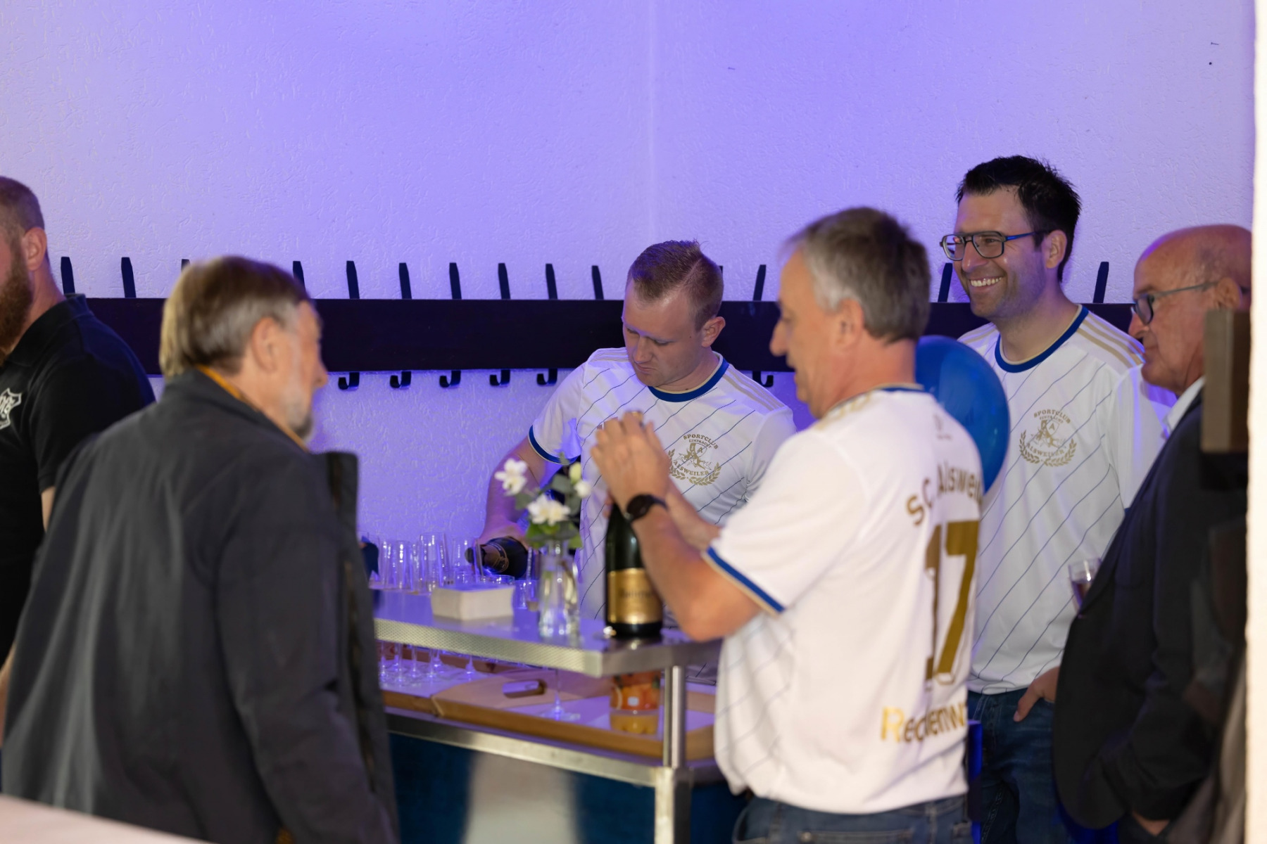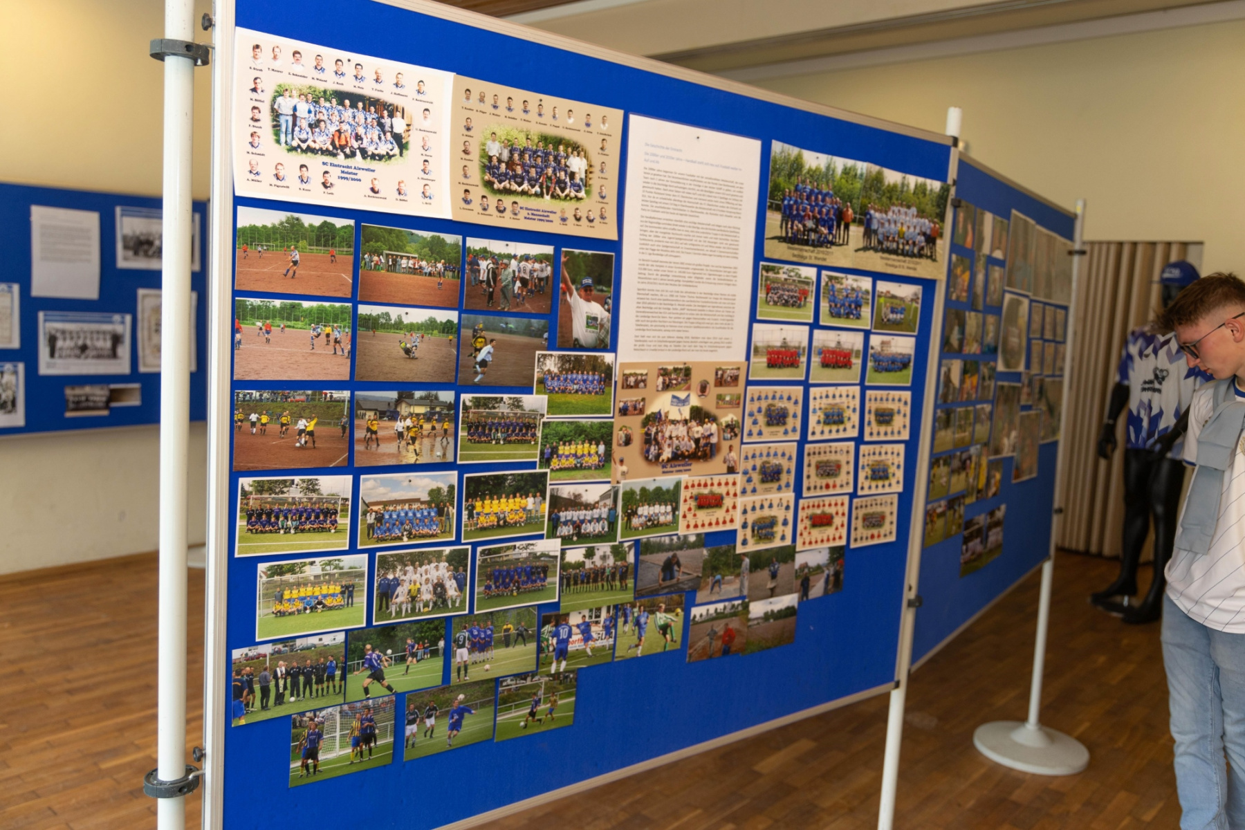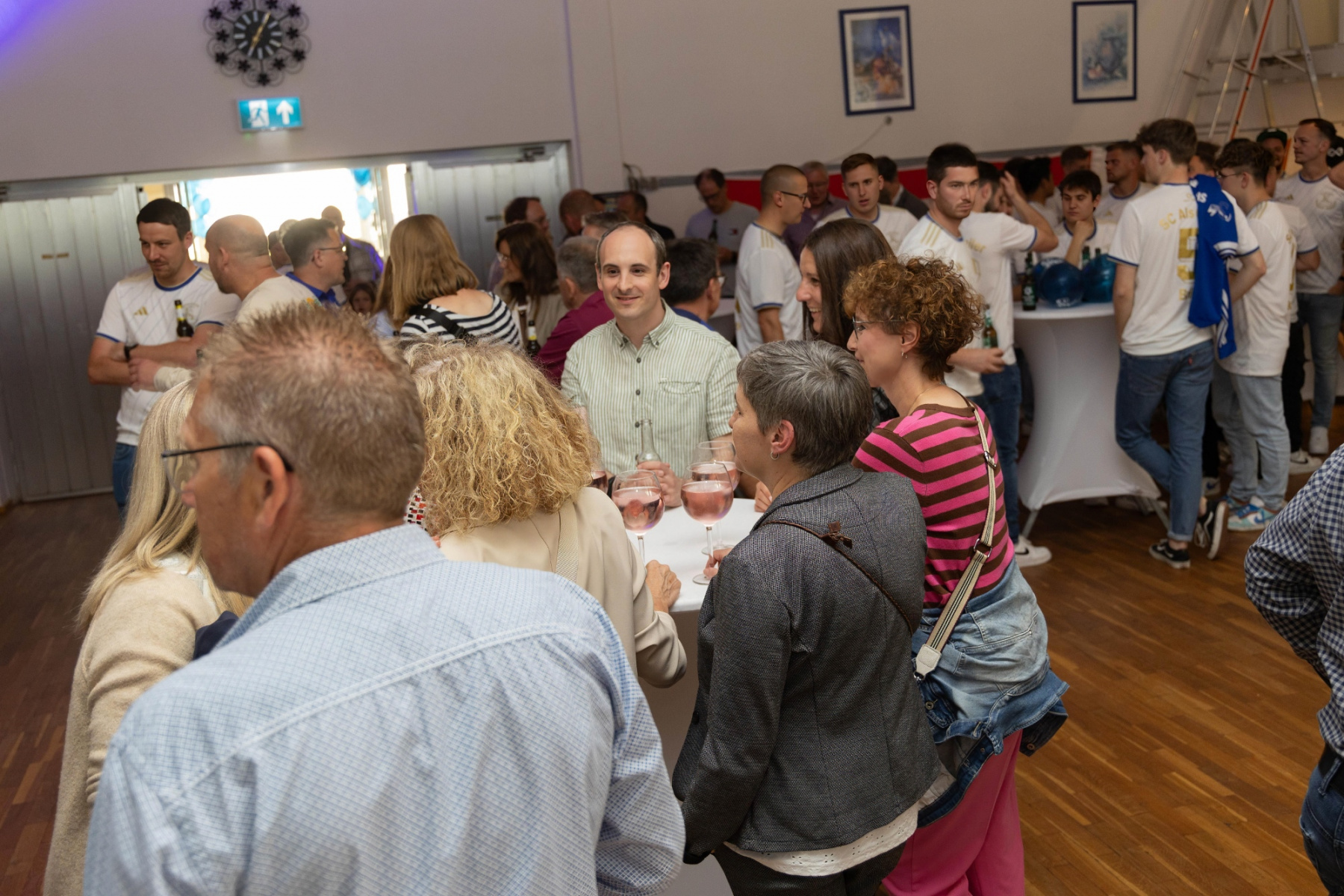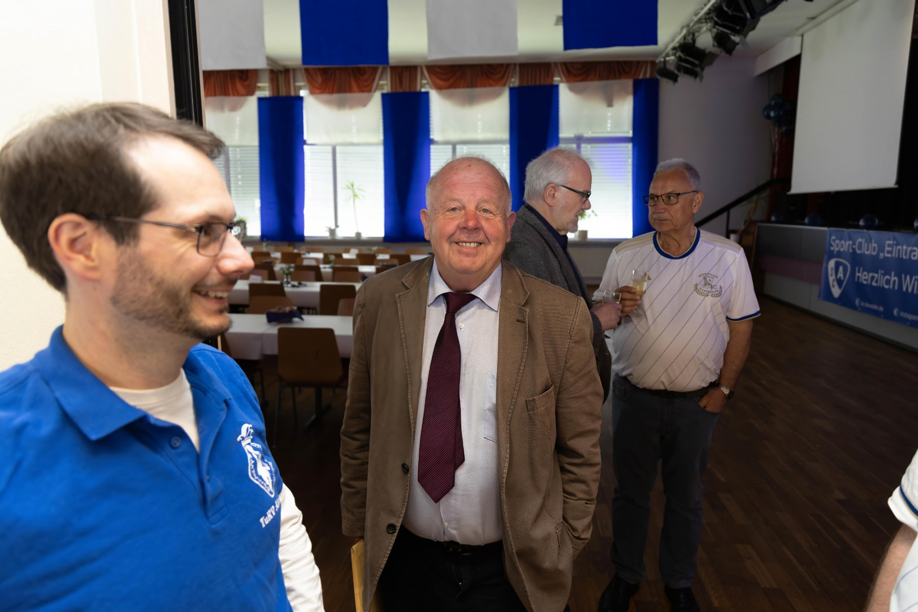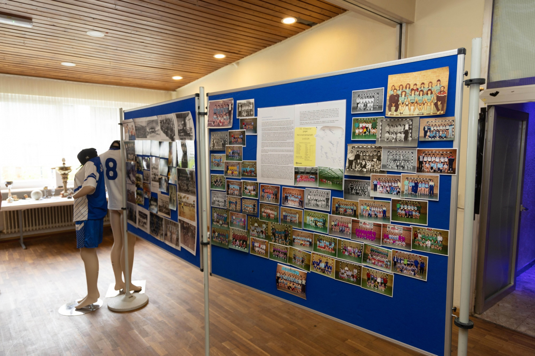 Zudem hielten die Räumlichkeiten eine große Überraschung parat: im „Raum der Geschichte“ wurde die Geschichte des Vereins durch zahlreiche Fotografien und Videomaterial der vergangenen Jahre stimmungsvoll präsentiert. Viele Gäste erkannten sich auf den Fotos wieder und tauschten sich über die früheren Zeiten aus.