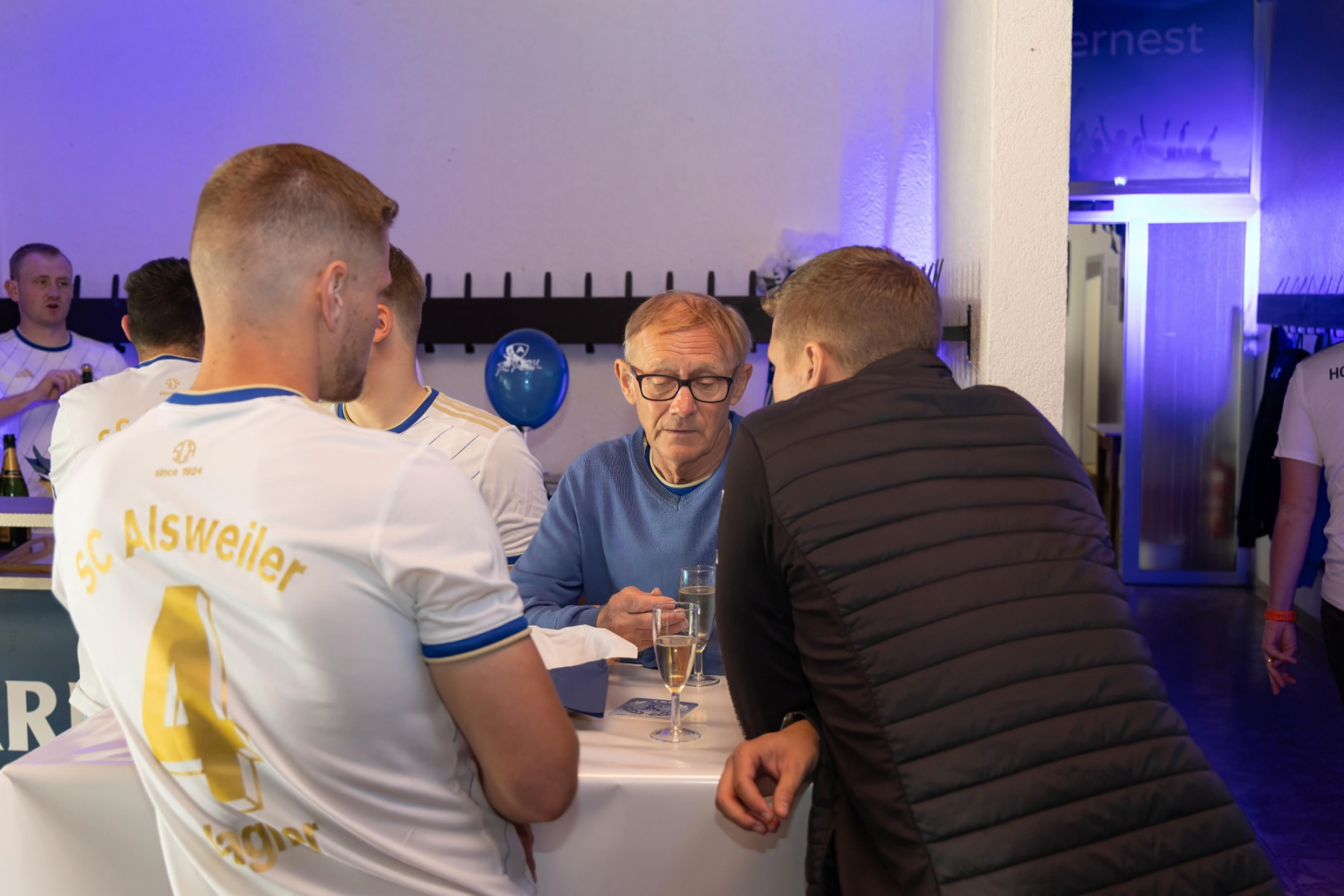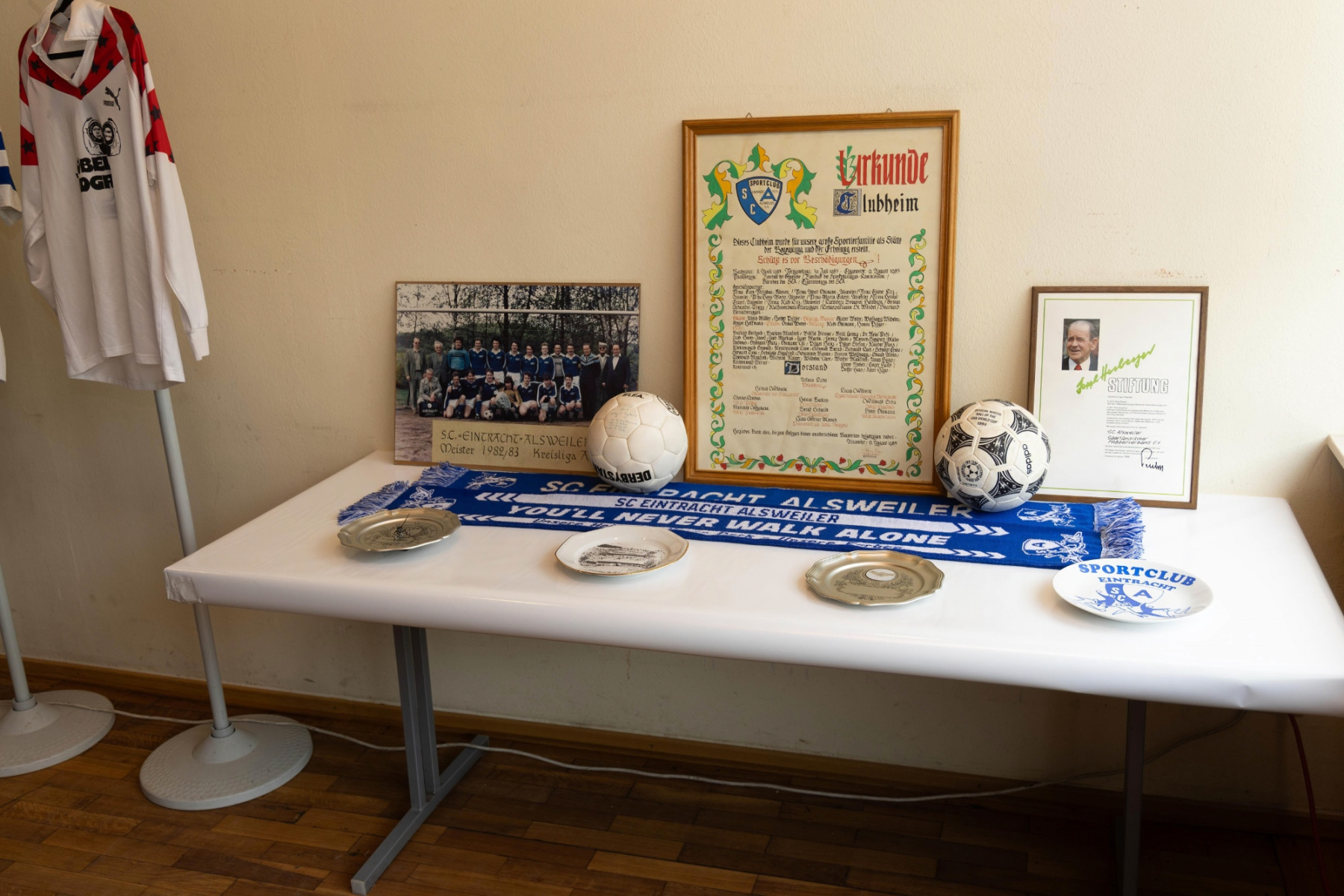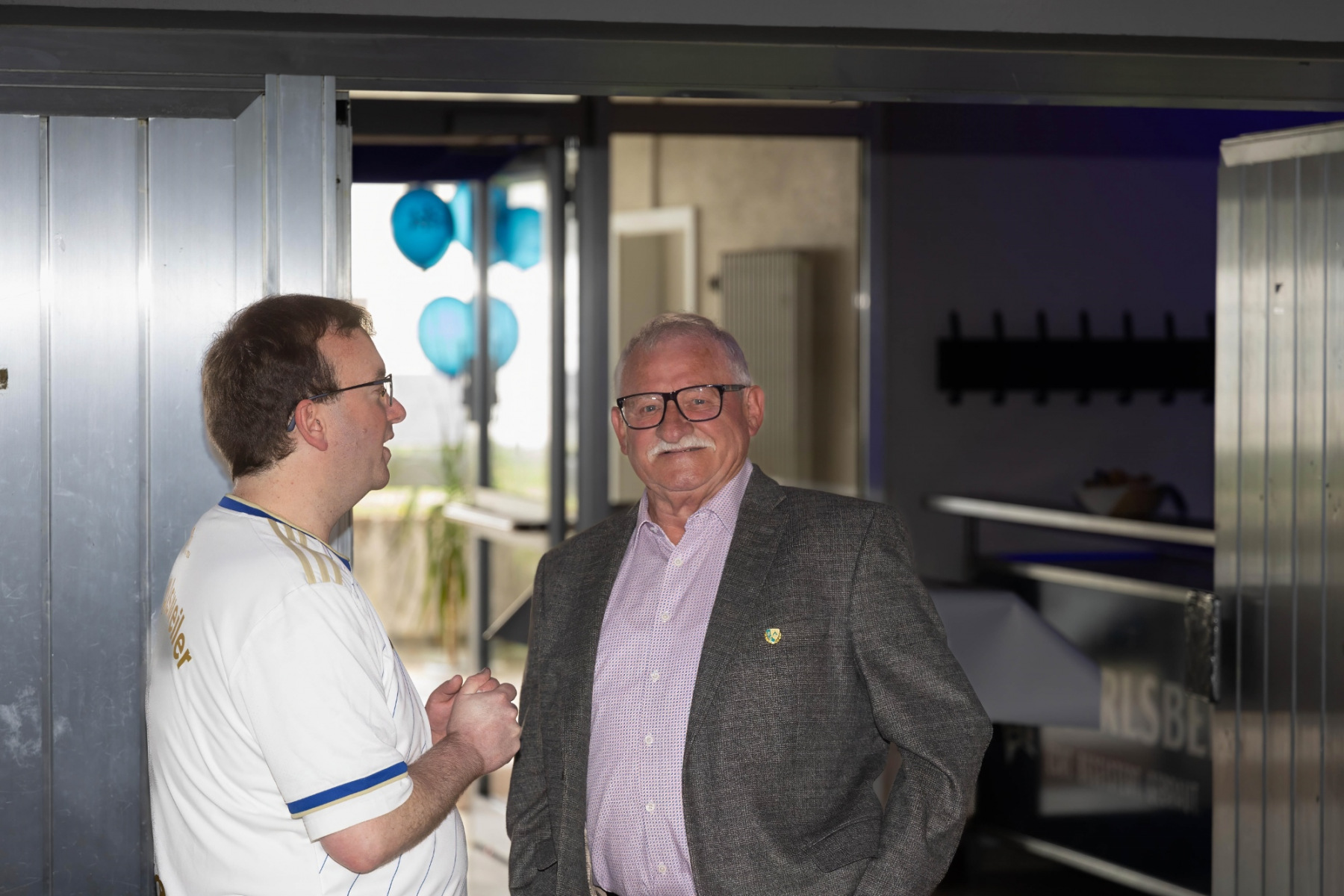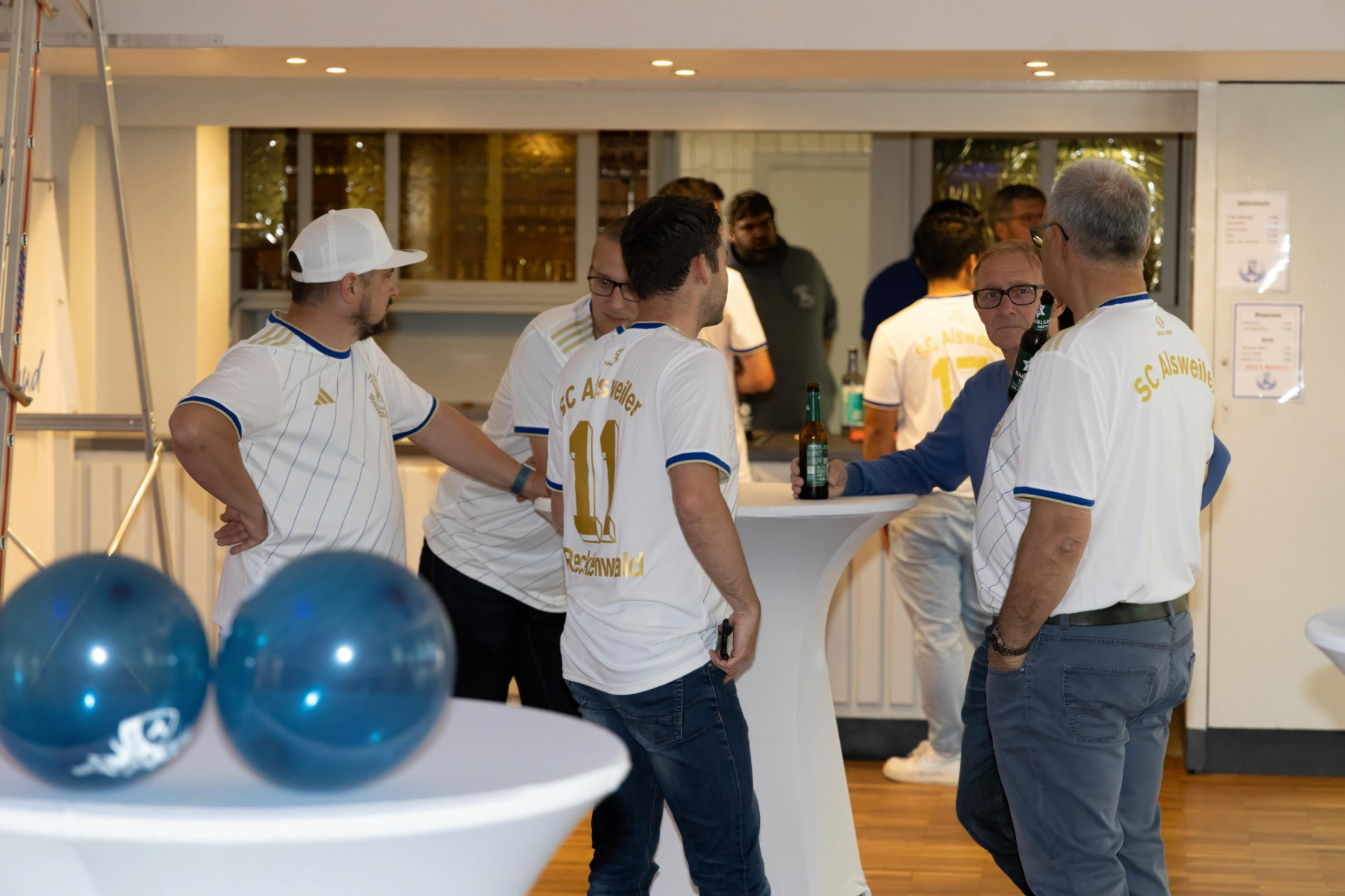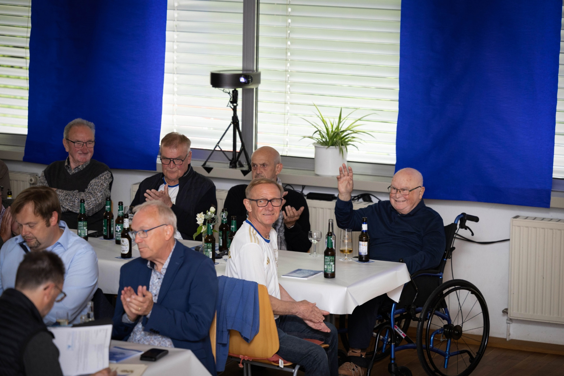 Zudem hielten die Räumlichkeiten eine große Überraschung parat: im „Raum der Geschichte“ wurde die Geschichte des Vereins durch zahlreiche Fotografien und Videomaterial der vergangenen Jahre stimmungsvoll präsentiert. Viele Gäste erkannten sich auf den Fotos wieder und tauschten sich über die früheren Zeiten aus.