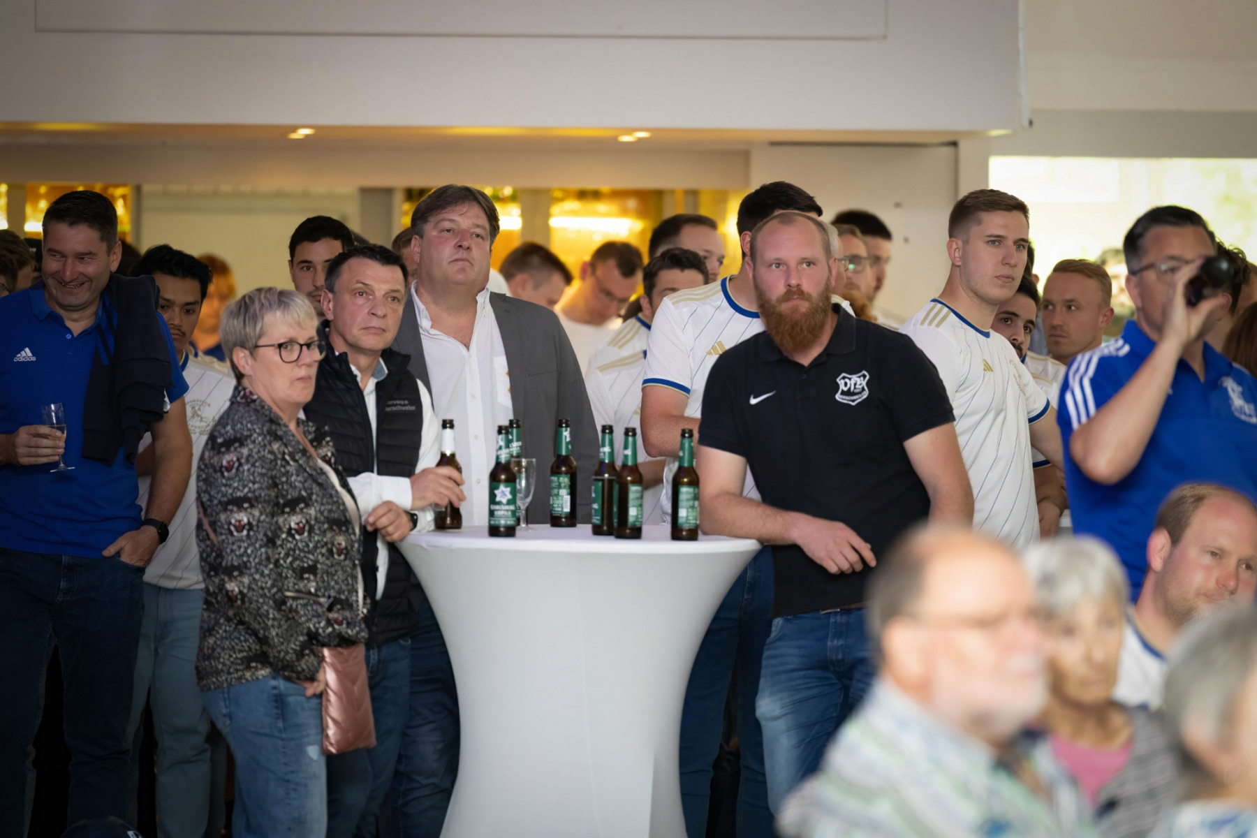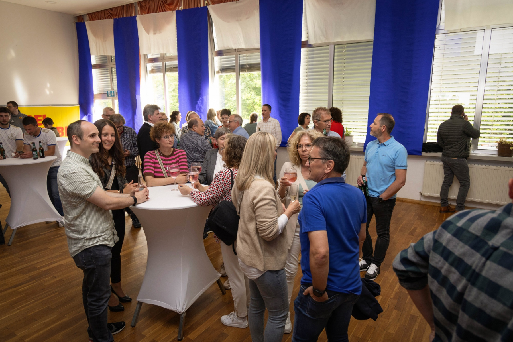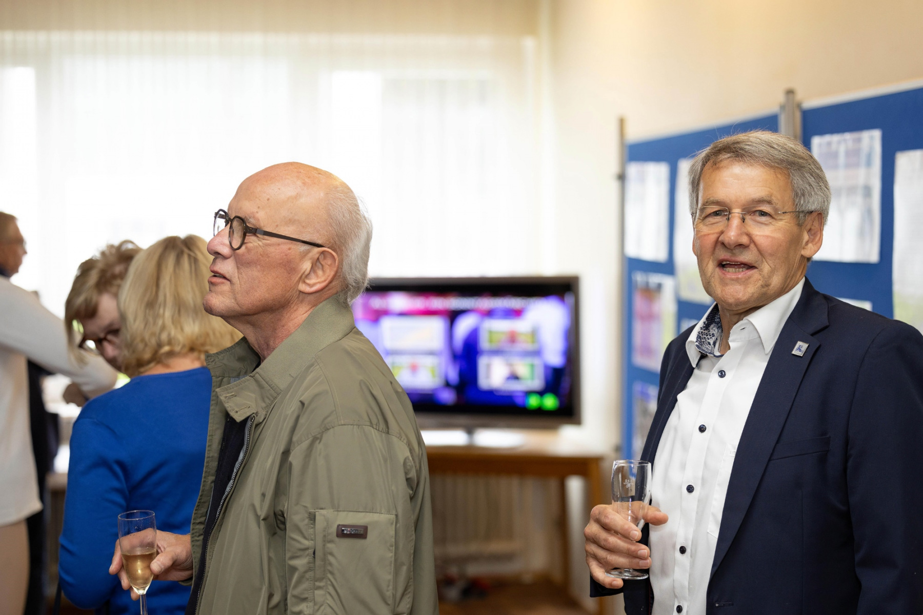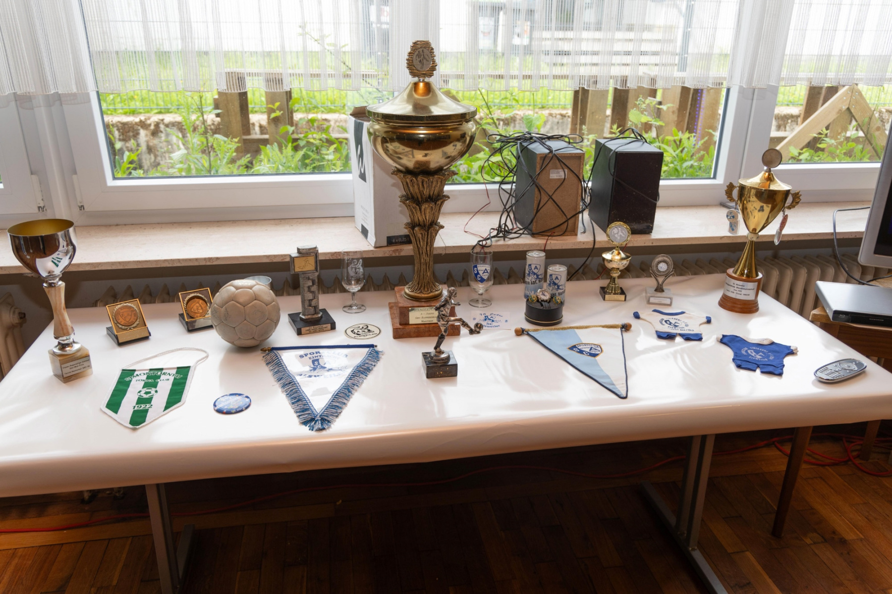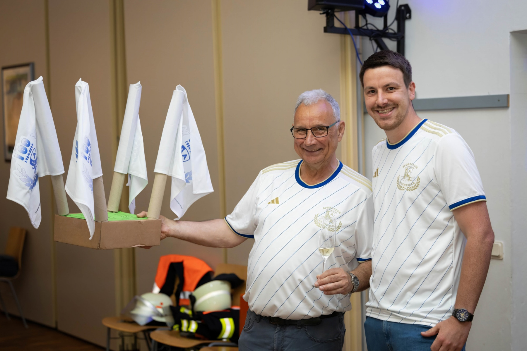 Zudem hielten die Räumlichkeiten eine große Überraschung parat: im „Raum der Geschichte“ wurde die Geschichte des Vereins durch zahlreiche Fotografien und Videomaterial der vergangenen Jahre stimmungsvoll präsentiert. Viele Gäste erkannten sich auf den Fotos wieder und tauschten sich über die früheren Zeiten aus.