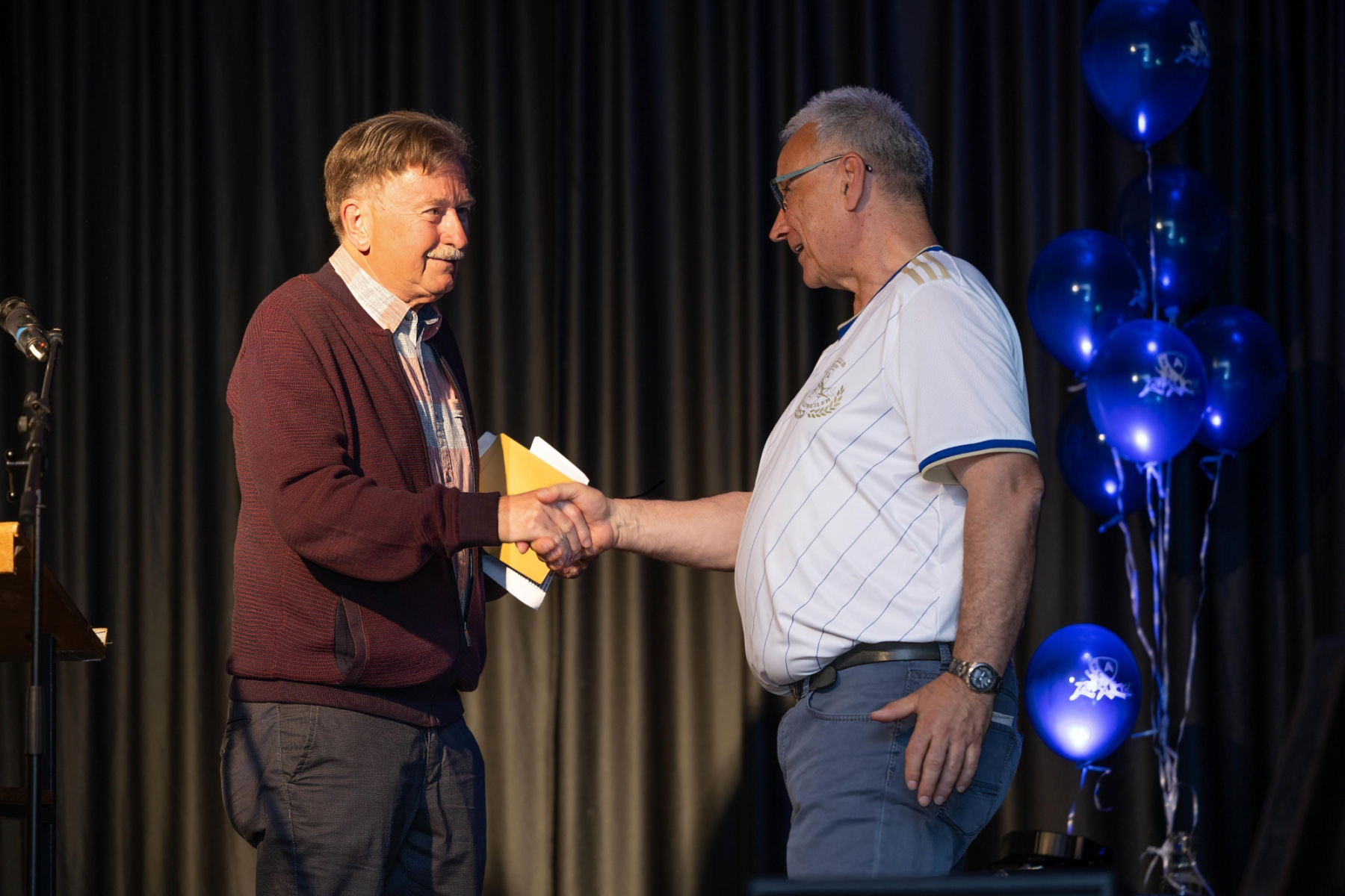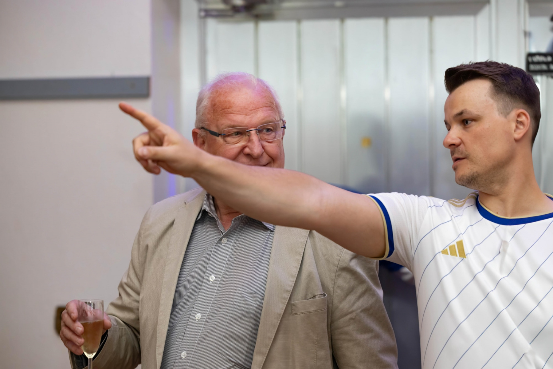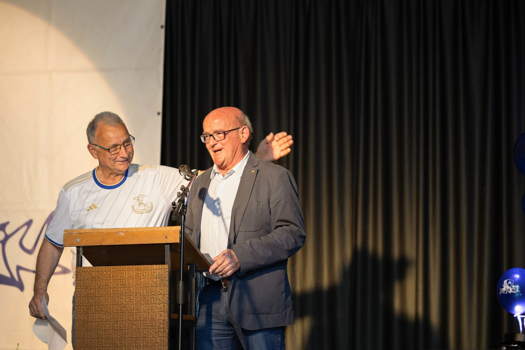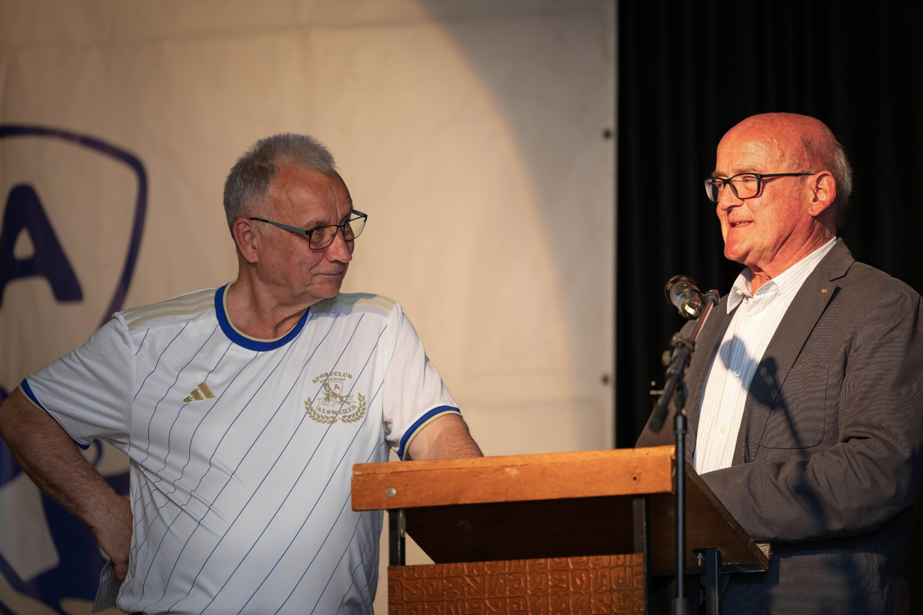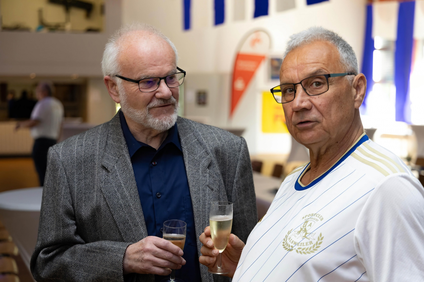 Zudem hielten die Räumlichkeiten eine große Überraschung parat: im „Raum der Geschichte“ wurde die Geschichte des Vereins durch zahlreiche Fotografien und Videomaterial der vergangenen Jahre stimmungsvoll präsentiert. Viele Gäste erkannten sich auf den Fotos wieder und tauschten sich über die früheren Zeiten aus.
