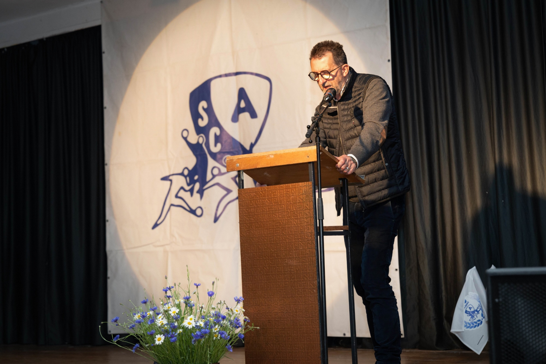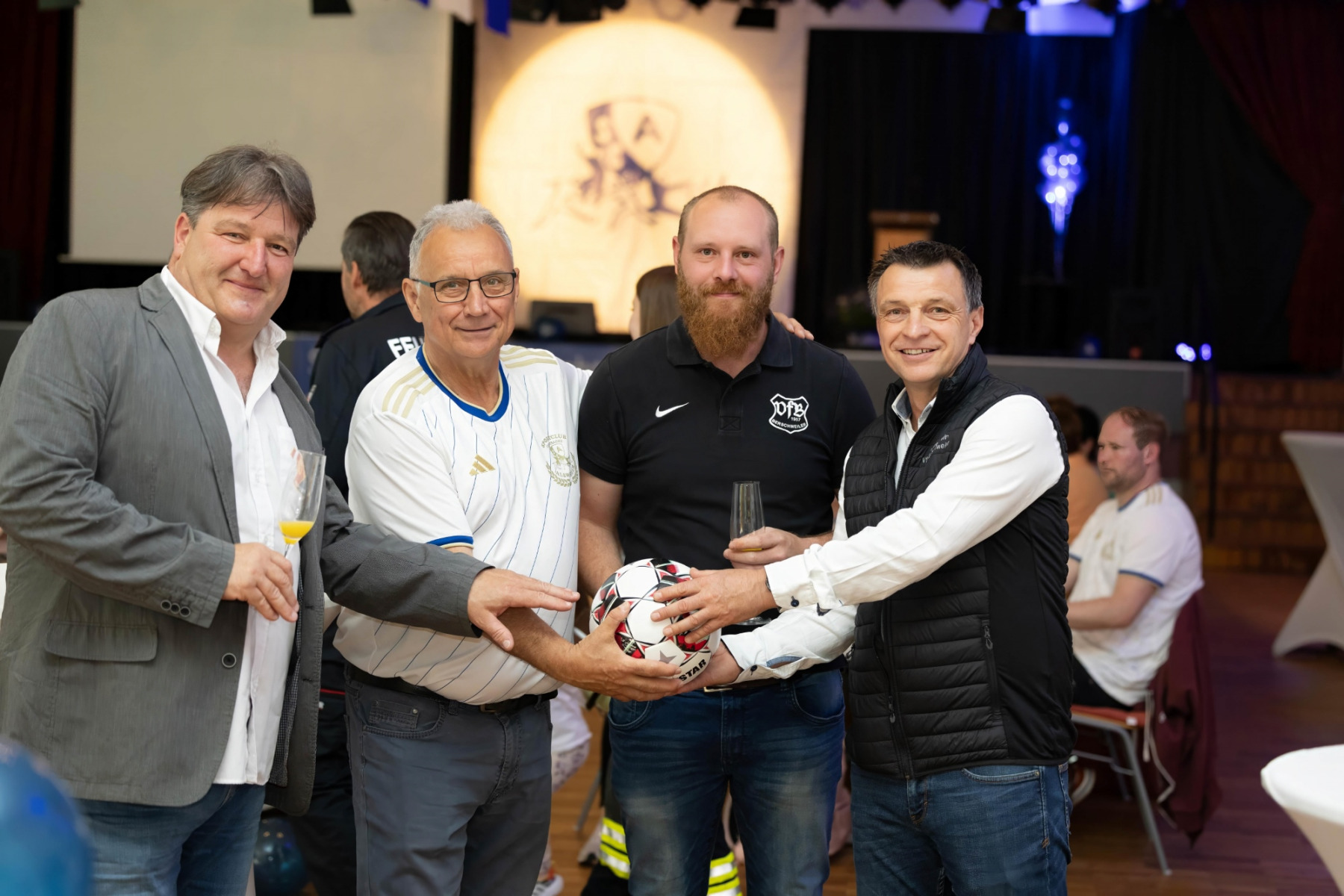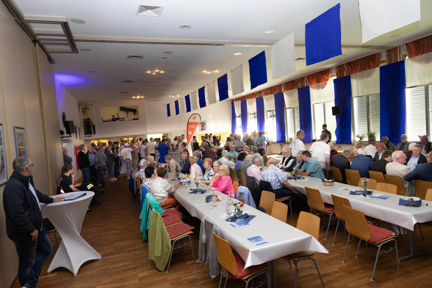 Der offizielle Teil der Veranstaltung begann um 19:00 Uhr mit der Begrüßung durch den Moderator der Abendveranstaltung, Herbert Ames. Anschließend übergab Herbert an den Vereinsvorsitzenden Peter Laub. In seiner Eröffnungsrede hob er die Bedeutung des Jubiläums hervor und dankte den zahlreichen (Ehren-) Mitgliedern, Sponsoren und Freunden des Vereins für ihre anhaltende Unterstützung. Das Festprogramm war vielfältig und abwechslungsreich gestaltet. Ein Höhepunkt war die historische Präsentation, die von Peter Laub vorbereitet wurde. Er führte die Gäste durch die bewegte Geschichte des Vereins, von den bescheidenen Anfängen im Jahr 1924 bis zu den heutigen Erfolgen und Herausforderungen. Alte Fotografien und Anekdoten sorgten für viele emotionale Momente und erinnerten die Anwesenden an die reiche Tradition des Vereins.
