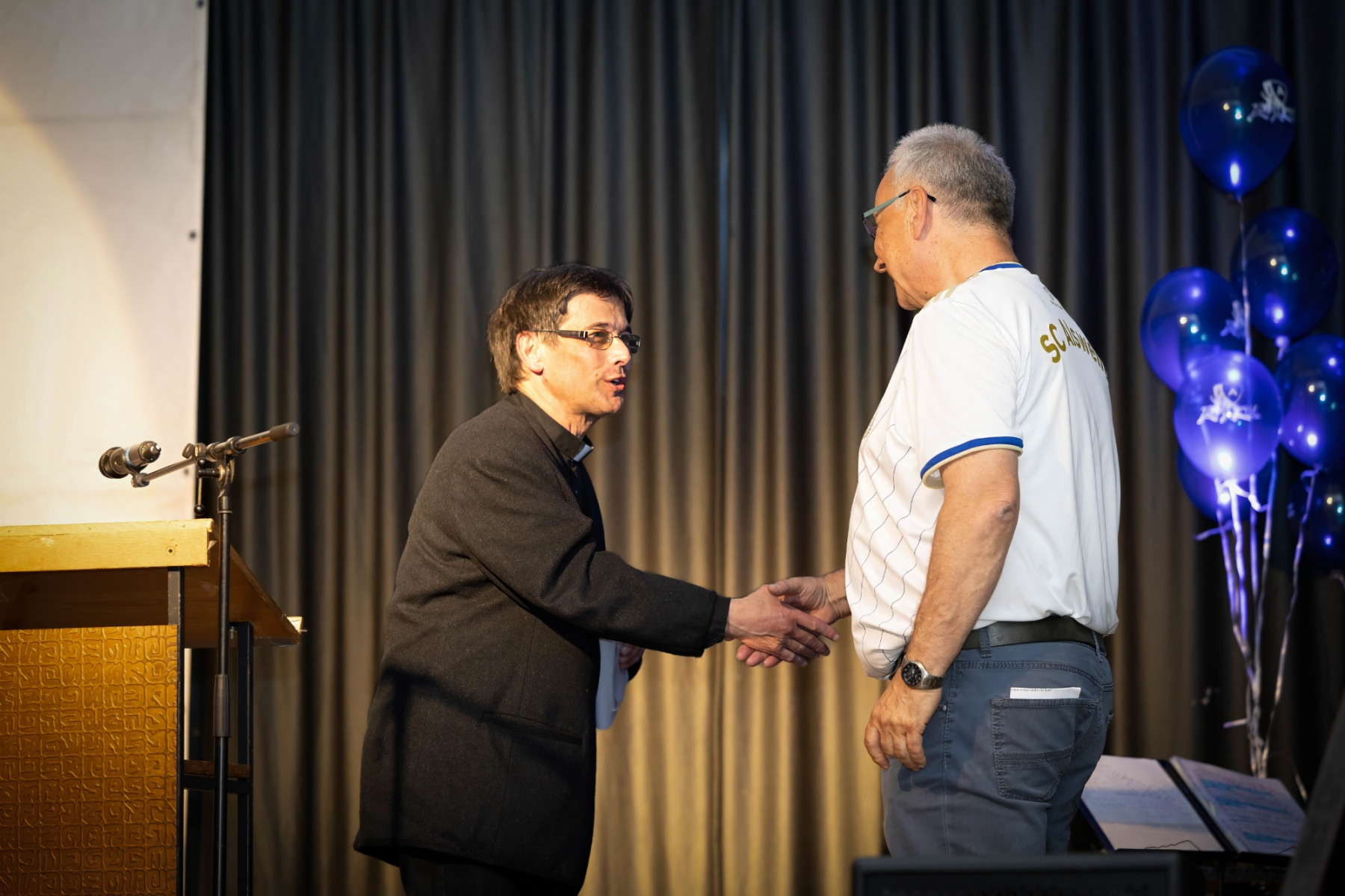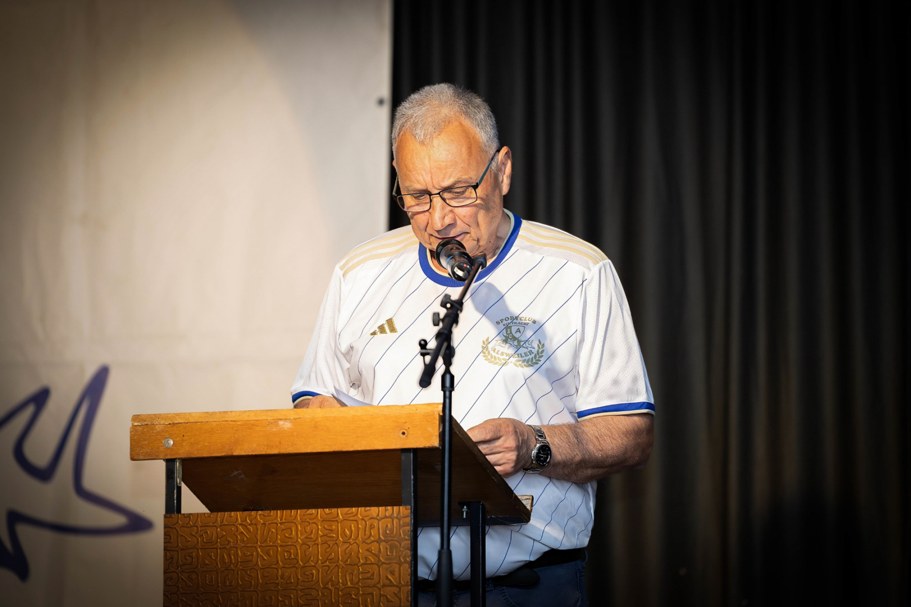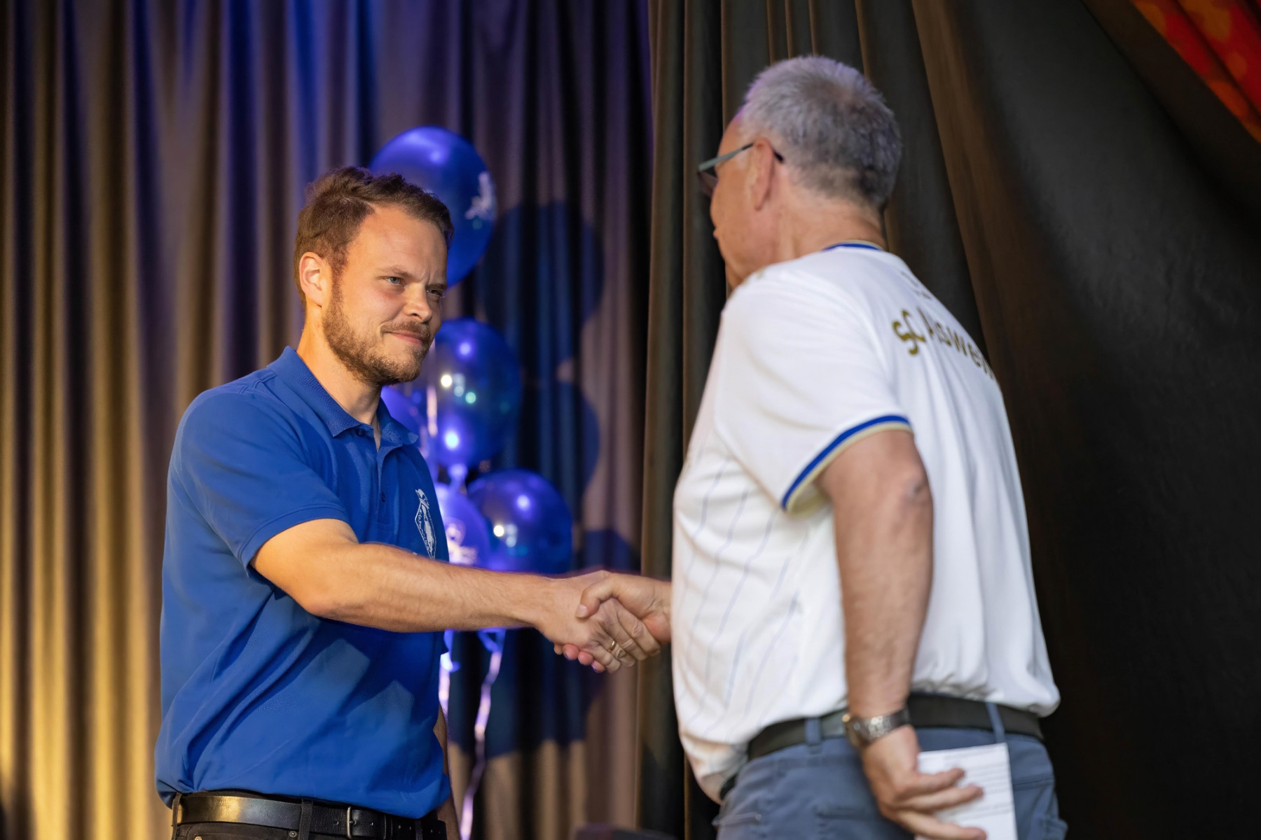 Der offizielle Teil der Veranstaltung begann um 19:00 Uhr mit der Begrüßung durch den Moderator der Abendveranstaltung, Herbert Ames. Anschließend übergab Herbert an den Vereinsvorsitzenden Peter Laub. In seiner Eröffnungsrede hob er die Bedeutung des Jubiläums hervor und dankte den zahlreichen (Ehren-) Mitgliedern, Sponsoren und Freunden des Vereins für ihre anhaltende Unterstützung. Das Festprogramm war vielfältig und abwechslungsreich gestaltet. Ein Höhepunkt war die historische Präsentation, die von Peter Laub vorbereitet wurde. Er führte die Gäste durch die bewegte Geschichte des Vereins, von den bescheidenen Anfängen im Jahr 1924 bis zu den heutigen Erfolgen und Herausforderungen. Alte Fotografien und Anekdoten sorgten für viele emotionale Momente und erinnerten die Anwesenden an die reiche Tradition des Vereins.